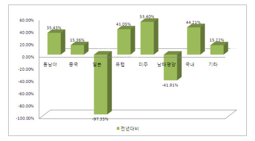 또한, 남태평양 지역은 동남아와 함께 대표적인 휴양지(괌, 사이판, 티니안, 팔라우 등)상품이 많이 있으나 전년과 비교해 41% 가까운 마이너스 성장세를 보였다. 이는 3월 지진해일 및 방사능 관련 피해가 우려된다는 이야기가 알려져 이 지역 프랑스 토토사이트심리가 위축된 탓으로 이러한 현상은 3월에 이어 4월에도 지속되고 있는 양상을 보였다.