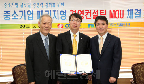 전경련중소기업협력센터와 한국전력공사가 지난 4일 서울 삼성동 한전 본사에서 한전의 협력 중소기업에 대한 패키지형 토토사이트 무신사 및 교육 제공을 위한 양해각서(MOU)를 체결한 가운데 양금승(가운데) 협력센터 소장과 권동열(왼쪽) 전경련경영자문단 위원장, 김종호 한전 관리본부장이 포즈를 취하고 있다.
