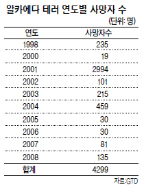 한편, 1998년 이래 전 세계에서 테러에 가담한 조직은 600여개에 이르며, 이들은 모두 2만204건의 테러를 일으킨 것으로 집계됐다.