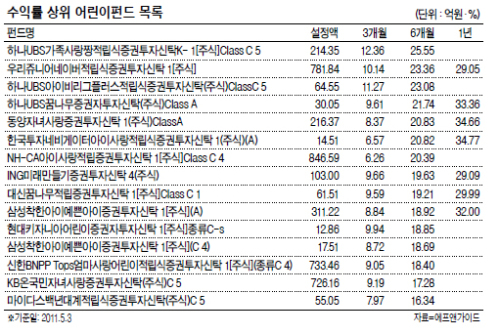 어린이골드문 토토사이트 먹튀 설정액은 운용골드문 토토사이트 먹튀를 기준으로 2006년 1월 2일 2074억원에 불과했지만 2007년 6422억원, 2008년 1조2555억원, 2009년 2조431억원, 2010년 2조6108억원까지 급증했다. 지난해 하반기부터 코스피가 상승세를 보이면서 환매가 증가한 탓에 지난 1월 3일 2조728억원으로 줄었다가 다시 증가하는 추세다.