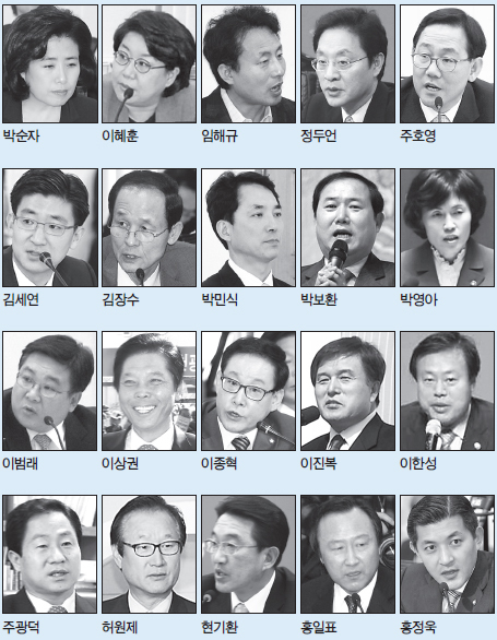이들의 지역구 분포를 보면 서울ㆍ경기ㆍ인천 23명, 부산ㆍ경남 11명, 대구ㆍ경북 6명, 강원 1명, 비례대표 3명으로, 수도권과 PK 지역 의원이 대부분이다.