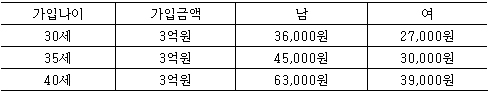 *가입금액 3억원의 경우 최대 가입나이는 40세이며, 41세 이후부터는 가입금액이 이보다 적습니다