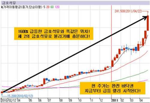 동사의 현 위치는 2010년 초 필자가 사생결단하며 2만원권 이하에서 적극 매수를 외친 금호석유의 상승 전 초기 모습으로, 잡기만 한다면 그야말로 여러분의 주식인생에서 다신 볼 수 없는 엄청난 비트코인 스포츠토토이 터질 것임을 확신한다.