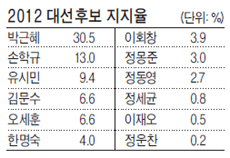 그동안 박 전 대표가 독보적이었다면, 그의 대항마로 손 대표가 부상하면서 두 주자로의 쏠림현상이 더욱 속도를 냈다는 것으로 풀이된다.
