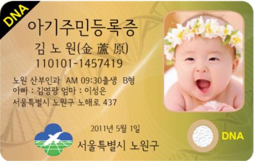 서울 노원구(구청장 김성환)는 16일부터 전국에서 처음으로 신생아에게 DNA가 포함된 유전자 토토사이트 토실장을 발급한다고 밝혔다. DNA 유전자 토토사이트 토실장은 아기 구강상피세포에서 추출한 유전자를 특수처리해 카드에 담은 것으로, 반영구적으로 쓸 수 있다.