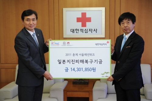 ‘2011 F/W on game 토토사이트’에서 일본 지진 돕기 행사의 일환으로 진행된 ‘도네이션 런어웨이(Donation Runway)‘프로젝트 기금 전달식이 지난 13일 대한적십자사에서 개최됐다.