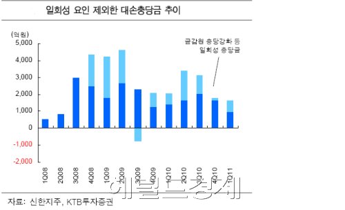 구용욱 대우증권 연구원은 “자산 증가로 은행의 순이자마진 개선이 나타나고 있고 경상적인 충당금 부담도 경감됐다”며 “이익의 안정성 강화가 다른 은행보다 높은 밸류에이션의 배경이 될 것”이라고 밝혔다.