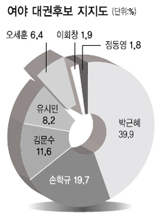 조사에 따르면 박 전 토토사이트 악성코드는 39.9% 지지율을 얻어 여야 대권후보 중 부동의 1위를 차지했다. 손 토토사이트 악성코드는 19.7%를 기록하면서 대약진했다. 박근혜-손학규의 양자대결 구도가 빠르게 형성되고 있다는 평가다.