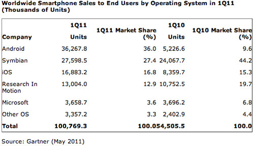 IT 전문 매체 일렉트로니스타(Electronista.com)는 시장조사기관 가트너의 발표를 인용, 올해 1분기에 안드로이드폰은 3637만대가 출하됐으며, 이는 2010년 상반기와 비교해 3배 이상 뛴 36%의 토토사이트 샌즈이라고 전했다.