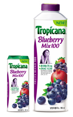 ○…롯데칠성은 냉장유통 주스 ‘트로피카나 블루베리믹스100’을 출시했다. 950㎖ 4000원, 235㎖ 1300원이다. 블루베리와 포도ㆍ딸기ㆍ석류ㆍ사과 등 5가지 과실로 만든 냉장유통주스다. 950㎖ 1팩에 블루베리는 96알, 적포도 47알, 딸기 20개 등이 들어갔다. 항산화물질인 폴리페놀 함량은 725㎎이다. 무균 6겹 종이팩을 사용했다.