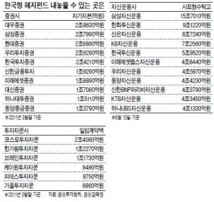 자기자본 1조원 이상인 증권사 10곳과 사모형 수탁액 4조원 이상인 11개 자산운용사, 일임계약액 5000억원 이상인 6개 투자자문사가 당장 헤지브랜드토토를 내놓을 것으로 보이는데, 모두가 대한민국 간판 투자회사들이다.