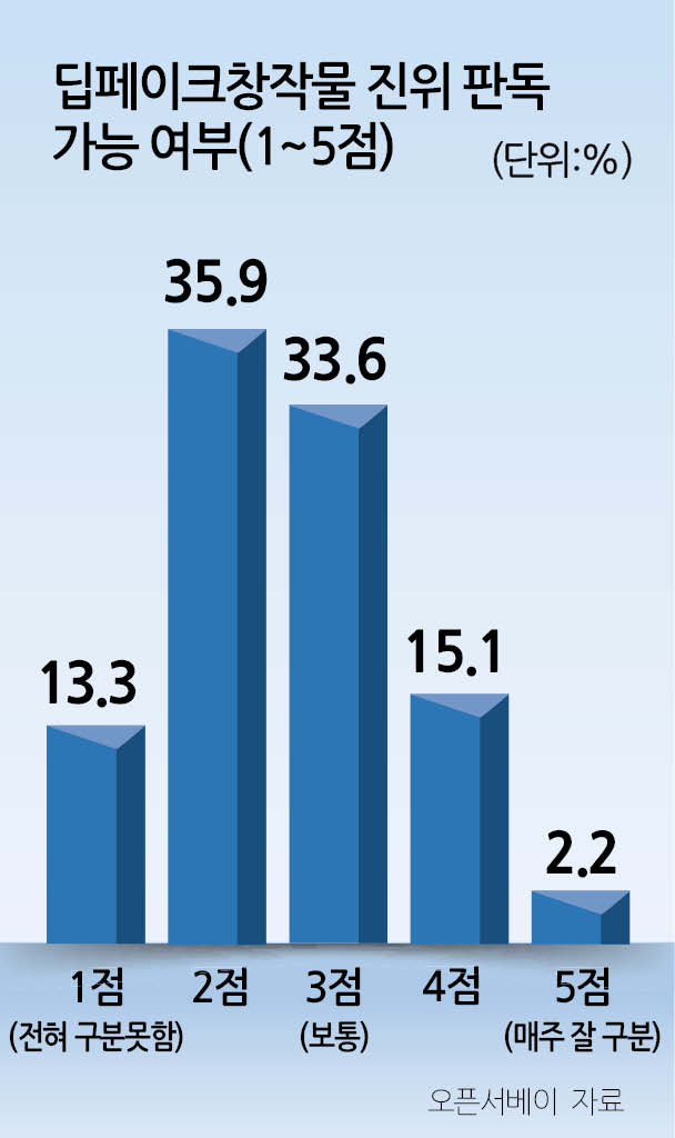 설문조사에 참여한 응답자의 35.9%는 갤럭시 토토사이트 창작물의 진위 여부를 ‘비교적 구별할 수 없다고 느낀다’고 응답했다. 33.6%는 ‘보통 수준으로 구별한다’고 답했다.
