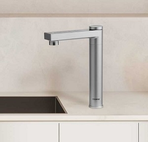 신제품은 싱크대 하부에 본체를 설치하고, 위에는 날씬한 출수구만 노출돼 주방공간을 넓게 사용할 수 있게 한다. 180도 회전으로 공간제약 없이 어떤 위치에서도 물을 받을 수 있다고 했다.