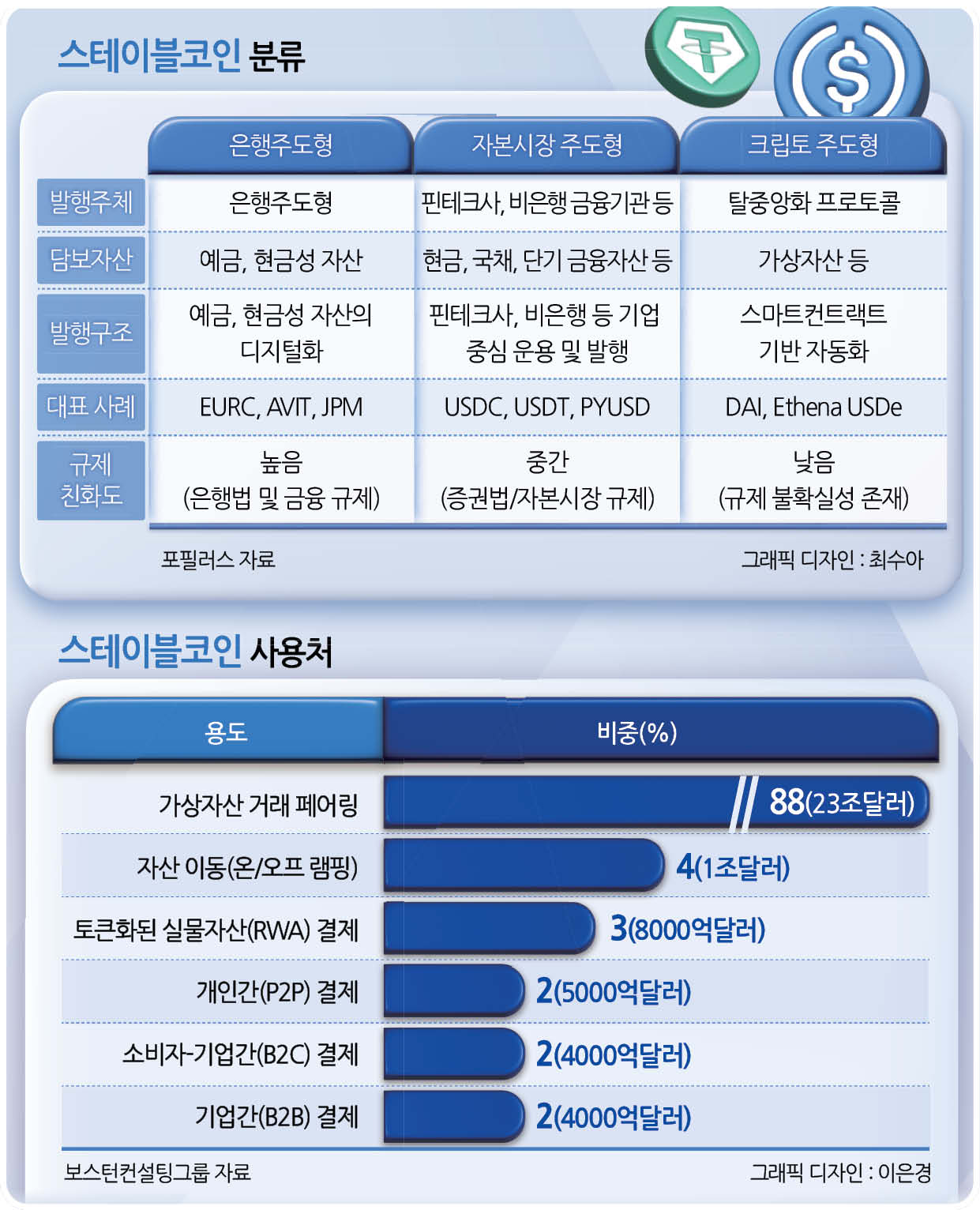 가치를 고정시킨 스테이블위너 토토은 단순 가상자산을 넘어 지급·결제 ‘플랫폼’으로 성장하고 있다. 중개 기관이 필요 없고 국경 간 직접 송금이 가능한 장점 탓에 수요가 급증하면서다. 올 1분기 국내 5대 가상자산 거래소에서 거래된 규모만 57조원에 달한다.