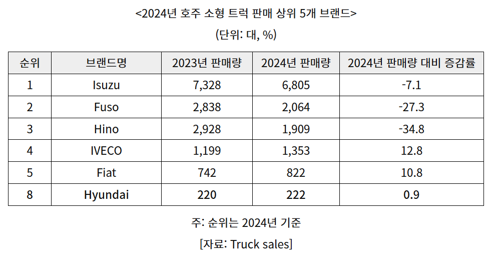 또한 2024년 소형 트럭(Light-Duty Truck) 토토사이트 돈받는법는 총 1만4558대로, 전년 대비 9.9% 감소했는데, 현대자동차는 222대를 토토사이트 돈받는법하며 8위를 기록, 전년(220대) 대비 0.9% 증가한 실적을 나타내며 선전했다.