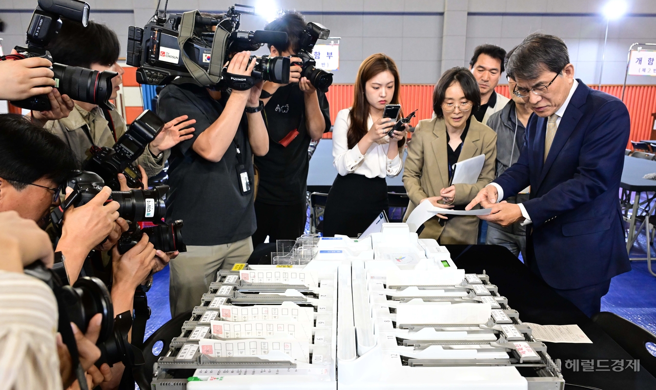[토토사이트 구 레드경제(안양)=이상섭 기자] 제21대 대통령 선거가 하루 앞으로 다가온 2일 오후 노태악 중앙선거관리위원회 위원장이 경기 안양시 덕천초등학교에 마련된 안양시 만안구선거관리위원회 개표소를 방문해 투표지분류기 시연을 참관하고 있다.