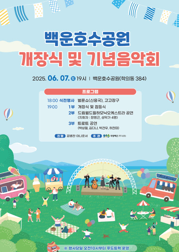 의왕백운PFV 관계자는 “이번 백운호수 공원 개장식은 단순한 공원 개장을 넘어, 공공성과 생태적 가치를 담은 공간의 복귀를 기념하는 의미 있는 행사”라며 “많은 시민 여러분들이 참석해 머스트잇 토토의 새로운 출발을 축하해 주시기를 바란다”고 전했다.