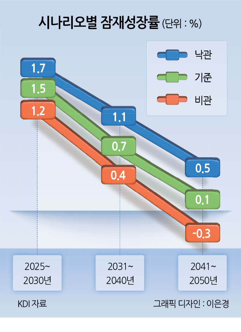 잠재토토사이트 경찰 조회은 한 나라의 노동·자본·자원 등 모든 생산요소를 모두 동원하면서도 물가 상승을 유발하지 않고 달성할 수 있는 최대 생산 수준을 말한다. 10년 전까지만 해도 3%를 오르내리던 한국의 잠재 토토사이트 경찰 조회은 최근 1%대로 낮아졌다. KDI가 추정한 2025∼2030년 잠재토토사이트 경찰 조회은 1.5%였다. 총요소 생산성 하락 등이 반영되면서 2022년 당시 전망(2023∼2027년 2.0%)보다 큰 폭으로 떨어졌다.
