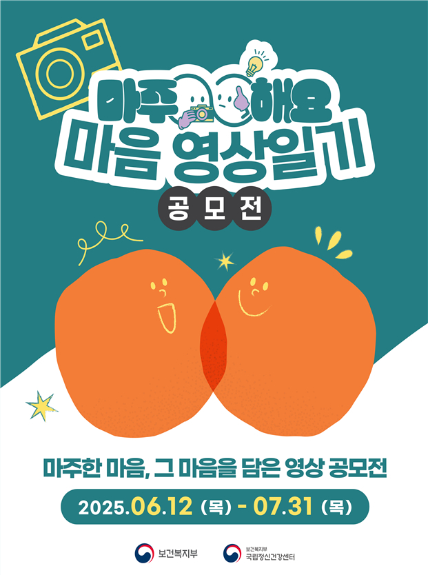 [헤럴드경제=이태형 기자]보건복지부 원탑토토는 정신건강에 대한 긍정적 인식 확산을 위해 6월 12일부터 7월 31일까지 ‘2025년 마주해요! 마음 영상 일기 공모전’을 개최한다고 11일 밝혔다.
