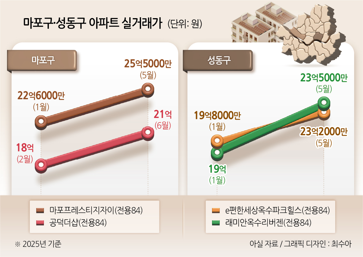 시장에선 토허구역 지정 이후 강남3구·용산구 진입이 어려워진 갭투자자 및 실수요자들이 2020~2021년 급등기 당시 학습효과와 다음달 스트레스 총부채원리금상환비율(DSR) 3단계 시행, 금리 인하 움직임 등의 복합적 요인들이 맞물리면서 마포구·성동구를 대체 지역으로 선택한 것으로 보고 있다.