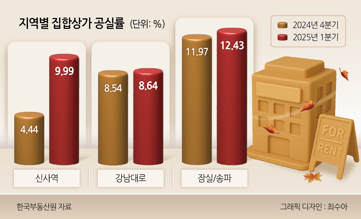 건물 전체가 공실인 중대형 상가도 많지만, 집합상가 공실률도 상당한 수준이다. 한국부동산원의 지역별 집합상가 공실률에 따르면 서울 내에서 전 분기 대비 공실률 가장 많이 증가한 지역은 5.99%포인트(p) 상승한 서울대입구역이었고, 그 뒤를 신사역(온라인 토토사이트 신고)이 이었다. 지난해 3분기와 4분기 4.42%에서 올해 1분기 9.99%로 급증하며, 5.53%p 상승했다.
