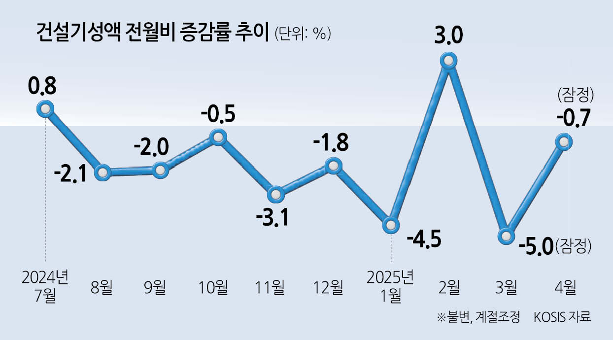![서울 집값이 급등하는 가운데, 국내 건설 공사 실적이 외환위기 이후 최대 폭으로 감소하는 등 스포츠토토 베팅샵는 최악의 상황으로 나타났다. 사진은 서울 마포구 한 공사 현장 모습 [연합]](https://wimg.heraldcorp.com/news/cms/2025/06/13/rcv.YNA.20250515.PYH2025051509390001300_P1.jpg)
