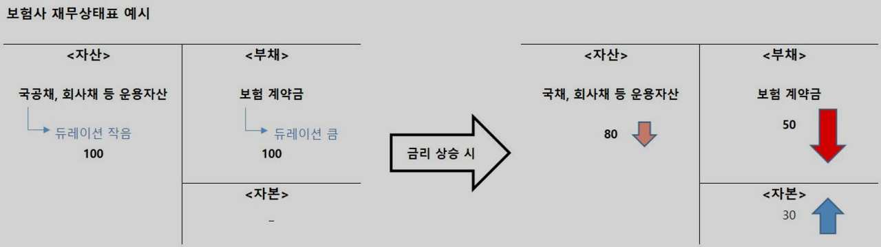 특히 IFRS17, 신지급여력제도(K-ICS)에선 시가평가에 기반해 부채 평가를 하기 때문에 금리에 따른 자산-부채 듀레이션 격차에 따른 자기자본 민감도가 아주 큽니다.