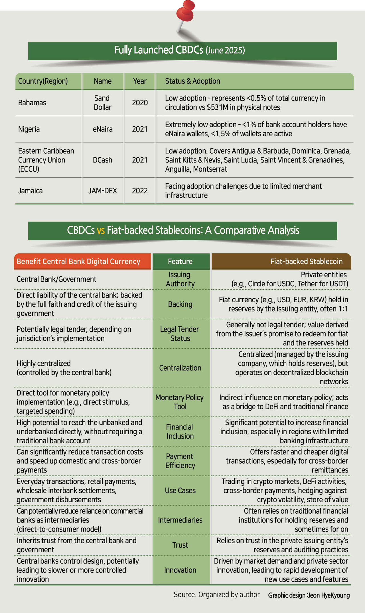 표2를 보면 발행 기관, 통화 정책의 효용성, 금융 포용성, 신뢰 등 주요 측면에서 CBDC와 법정화폐 기반 스테이블토토사이트 신고보상의 근본적인 차이를 점을 알 수 있다. CBDC는 국가 통제와 정책 도구를 우선시하는 반면, 스테이블토토사이트 신고보상은 시장 주도적 혁신과 더 폭넓은 접근성을 강조한다.