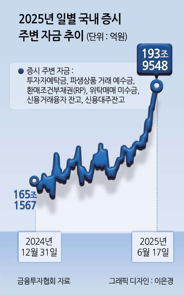 작년 말(12월 31일) 기준으로 증시 주변 토토사이트 황토은 165조1567억원 수준이었다. 올해 들어서만 증시 주변으로 토토사이트 황토이 28조7981억원 규모로 더 모여든 셈이다.