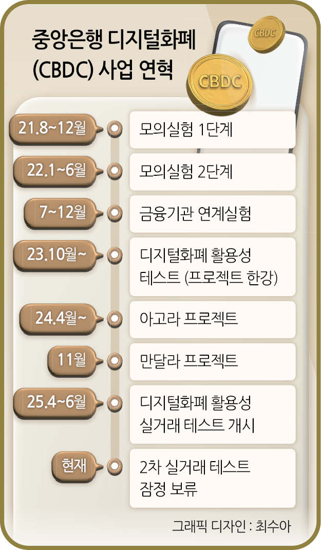 한은은 2020년 이후 디지털화폐에 대한 연구와 개발을 진행했다. 2018년 8월부터 12월까지 첫 모의실험을 한 이후 2023년부터는 ‘프로젝트 한강’이라는 이름 아래 활용성 테스트를 실행했다.