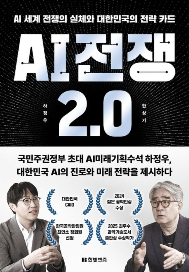 ▶AI 전쟁 2.0: AI 세계 전쟁의 실체와 대한민국의 전략 카드(하정우·한상기 지음, 한빛비즈)=이재명 정부 첫 AI(인공지능)미래기획수석으로 발탁된 하정우 네이버클라우드 AI혁신센터장이 한국의 ‘AI 강국’ 도약을 위한 구체적인 실행 방안을 제시한다. 이번 정부의 AI 정책 기조를 형성할 전략적 뼈대를 담고 있어 시중에 출간된 숱한 AI 서적들과는 결이 다르다. 저자는 2030년까지 50만 장 규모의 최신 AI 반도체를 확보하는 ‘AI 데이터센터’를 구축하되, 운영은 역량 있는 민간 기업에 맡기는 민관 협력 모델을 제안한다. 동시에 최고의 AI 전문가들이 AGI(범용인공지능) 연구에만 전념할 수 있는 ‘국가 초지능 연구소’ 신설이 반드시 필요하다고 본다. 국방 AI 강화를 위해 ‘AI 전문사관 제도’를 도입하고, 국방 R&D 예산 중 20%를 국방 AI 기금 형태로 별도 편성할 것도 주문한다. 이 모든 정책을 유기적으로 집행할 전담 조직으로 ‘AI 디지털 혁신부’ 신설도 필수적이다. ‘AI 국정 전략서’를 떠올리게 하는 문장의 행간에서 “AI가 단지 새 정부의 새로운 어젠다에 그쳐선 안 된다”고 거듭 강조하는 저자의 절실함이 읽힌다.