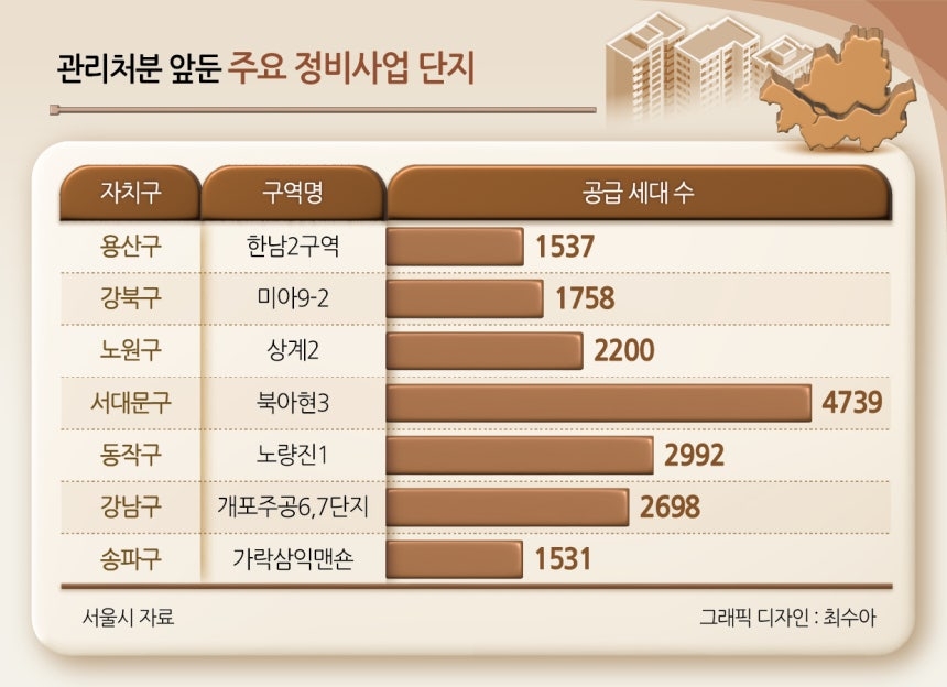 실제 신규 택지 공급이 마땅치 않은 수도권 특히 서울에선 공급의 상당수가 정비사업을 통해 공급된다. 정비업계에 따르면 사업시행계획인가 후 관리처분계획인가를 기다리는 조합은 모두 정부의 토토 사이트 바카라규제 영향권에 들어간다. 서울 용산구 한남2구역, 강남구 개포주공 5·6·7단지, 송파구 잠실 우성4차, 동작구 노량진 1구역 등 52곳의 사업장이 대표적이다. 가구 수로 따지면 5만 세대가 넘는 주택이 토토 사이트 바카라 ‘위기’에 부닥친 것이다.