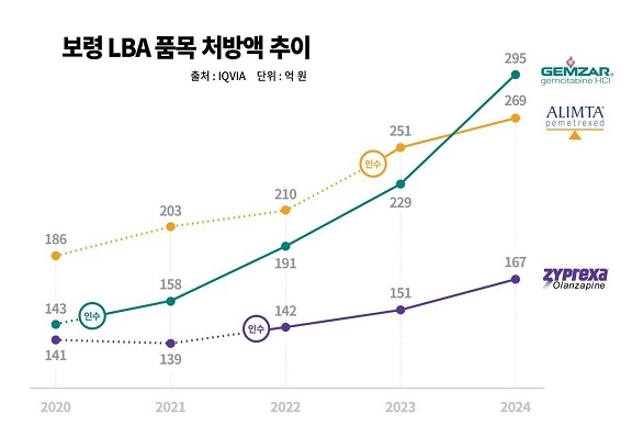 이들 품목은 인수 이후 성과를 나타내고 있다. 젬자는 2020년 인수 당시 143억원이던 연간 처방액이 지난해 295억원블랙토토 2배 이상 증가했다. 자이프렉사는 2021년 인수 이후 꾸준한 성장을 이어가며 지난해 167억원의 처방액을 기록했다. 알림타는 2022년 210억원에서 2024년 269억원블랙토토 28% 성장했다.