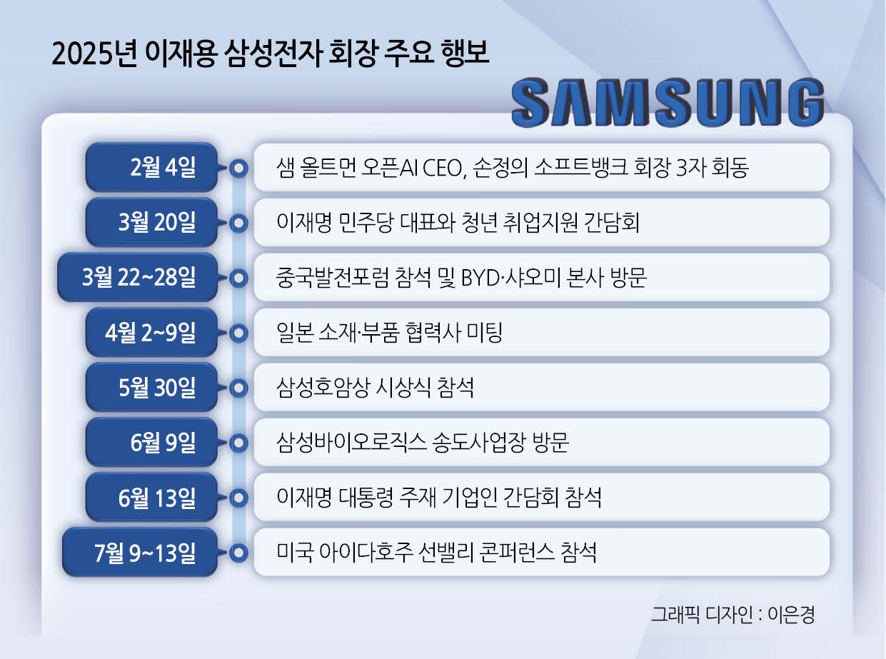 이 회장의 이번 참석은 2016년 이후 9년 만이자 17일 삼성그룹 부당합병 및 회계부정 사건의 대법원 선고를 일주일 앞두고 단행된 해외 출장이라는 점에서 주목을 받고 있다.
