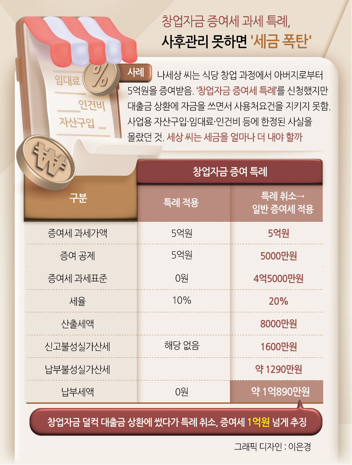 ![2023년 초 식당 창업을 준비하던 나세상 씨는 잔금 부족으로 어려움을 겪다 아버지에게 도움을 청해 5억원을 증여받았다. 그는 알파벳 토토 증여세 과세특례를 적용하면 세금 없이 증여받을 수 있을 것이라 판단했지만 1억원이 넘는 고지서를 받은 것. 세상 씨에게 무슨 일이 벌어진 걸까. [챗GPT를 이용해 제작함]](https://wimg.heraldcorp.com/news/cms/2025/07/10/news-p.v1.20250710.da7114bd2441425ea8859c3085884f3e_P1.png)