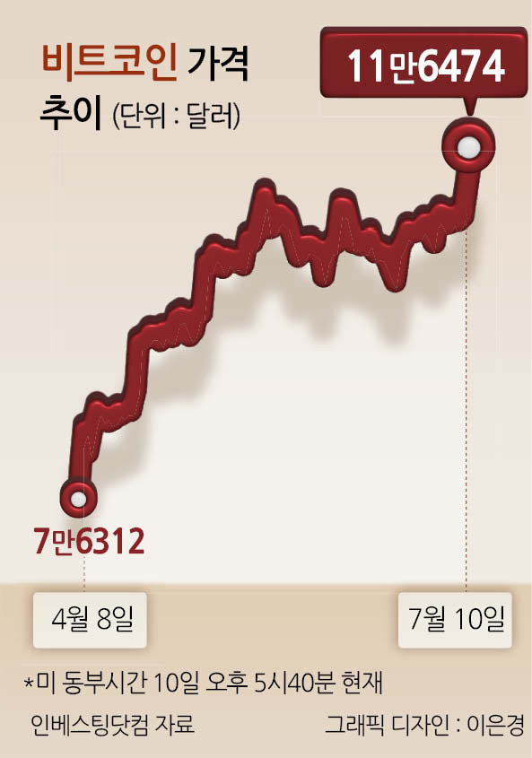 이날 급등은 도널드 트럼프 대통령의 발언이 도화선이 됐다. 트럼프는 “기술주 등 주가가 사상 최고치를 기록하고 있고, 암호화폐는 천장이 뚫렸다”고 말했다. ▶관련기사 3면