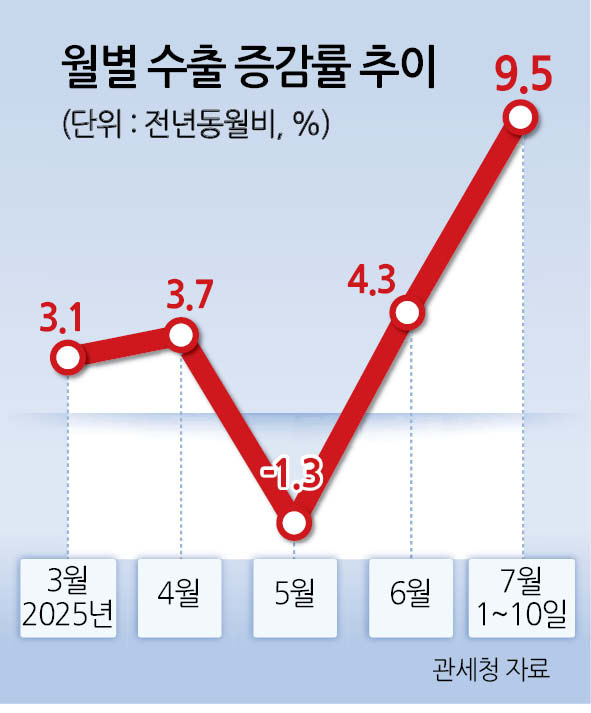 7월 1~10일 아바 토토사이트이 반도체·자동차·선박 등 주력 품목 호조에 힘입어 전년 동기간보다 10% 가량 증가했다. 도널드 트럼프 미국 행정부의 관세부과 여파에도 대미 아바 토토사이트이 6% 가량 늘었다.
