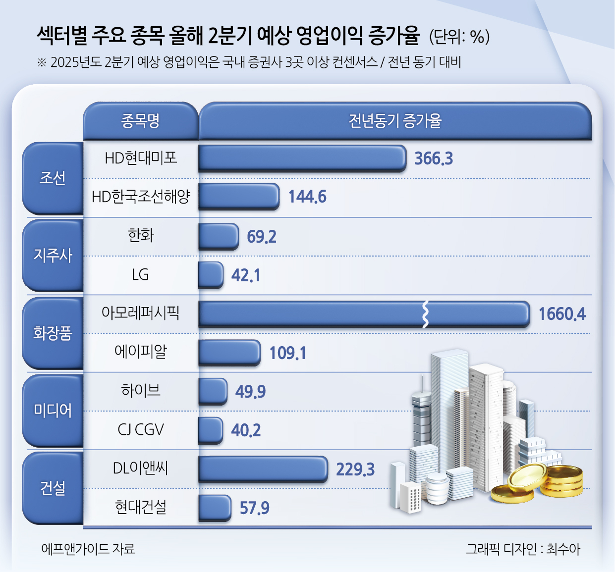 2Q영업익, 전년比 조선 7개株 +153%·지주사 9개株 +66%