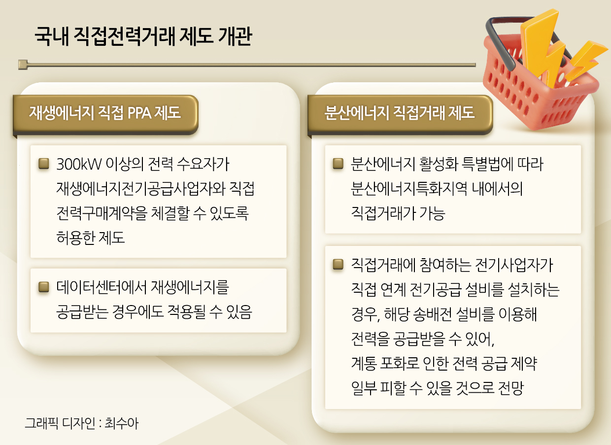 또한 지난해부터 시행된 ‘분산에너지 활성화 특별법’에 따라 지정된 분산에너지특화지역 내에서의 직접거래가 가능하게 됐다. 직접거래에 참여하는 전기사업자가 직접 연계 전기공급 설비를 설치하는 경우, 해당 송배전 설비를 이용해 전력을 공급받을 수 있어, 계통 포화로 인한 전력 공급 제약을 우회할 수 있는 대안으로 주목된다.