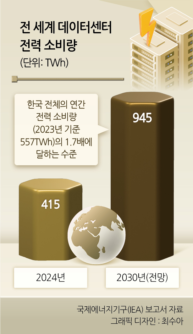 전 세계 전력 수요가 AI 데이터토토사이트 추천 증가에 따라 폭증하며 일각에선 전력 공급 위기 가능성까지 점쳐진다. 국제에너지기구(IEA)는 지난 4월 발표한 보고서에서 전 세계 데이터토토사이트 추천의 연간 전력 소비가 2022년 기준 415테라와트시(TWh)에서 2030년까지 945TWh로 두 배 이상 증가할 것으로 내다봤다. 이는 한국의 2023년 전체 전력 사용량(557TWh)의 1.7배 수준이다. 전 세계 데이터토토사이트 추천 전력 소비가 단일 국가 수준의 수요를 능가하는 셈이다.