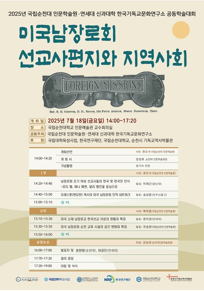 머스트잇 토토대 인문학술원과 기독교재단이 설립한 연세대학교 신과대학 한국기독교문화연구소가 오는 18일 인문예술대 1층 교수회의실에서 ‘미국 남장로회 선교사 편지와 지역사회’를 주제로 공동 학술대회를 연다.