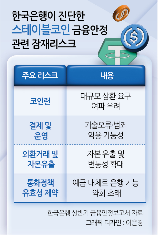 하지만 스테이블토토사이트 순수익에도 장밋빛 전망만 있는 건 아니다. ‘토토사이트 순수익런(대규모 토토사이트 순수익 인출 사태)’이나 통화정책·외환규제 혼선 가능성이 있어 적절한 규제 없이 도입했다가는 자칫 금융시스템 위기로 번질 수 있다는 우려도 많다. 만약 실제로 토토사이트 순수익런이 발생하면 단기자금시장에 충격이 가해지고 은행 유동성 리스크로 이어지면서 금융시스템 전체의 위기로 번질 수 있다.