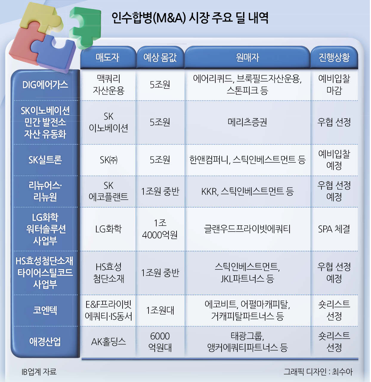 18일 IB 업계에 따르면 올해도 인수합병(M&A) 시장 내 주요 매물은 대부분 바이아웃 매각과 카브아웃(사업부 분할 후 매각) 등이 주를 이루고 있다. 현재 절차가 진행 중인 HS효성첨단소재의 타이어 스틸코드 사업부 매각, 토토사이트 매입실트론, 토토사이트 매입에코플랜트 환경 자회사 매각 등이 대표적이다.