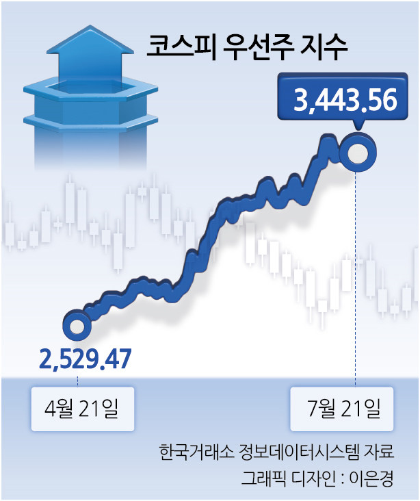 22일 한국거래소 정보데이터시스템에 따르면 삼성전자·현대차·미래에셋증권·두산 등 주요 엘클라시코 토토사이트로 구성된 코스피 엘클라시코 토토사이트 지수는 지난 3개월간 2529.47에서 3443.56으로 25.83% 상승했다. 코스피 상승률(29.92%)보다는 낮지만 증권가에서는 향후 상승 여력이 있다는 전망이 나온다.