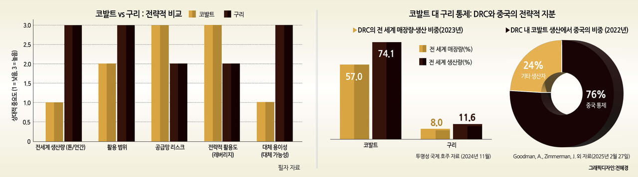 코발트는 금처럼 화려하지도 않고, 원유처럼 요동치지도 않지만 훨씬 더 중요하다. 전기차, 스마트폰, 위성 등 디지털 경제의 핵심 하드웨어에 들어가는 리튬이온 배터리를 안정화시킨다. 드론과 이동식 지휘체계 등 전장에서도 필수적이다.