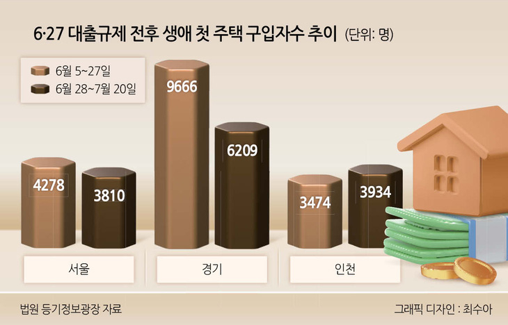 ‘6·27 대출규제’ 이후 수도권 생애 첫 주택 구입자수가 시행 전에 비해 약 20% 토토사이트 운영자 공소시효한 것으로 나타났다. 특히 이번 규제의 직접적 타깃이 된 서울 주요 자치구에서 토토사이트 운영자 공소시효세를 보였고, 고가 아파트 밀집지역인 강남구에선 첫집마련 무주택자 수가 규제 전 대비 70% 급감했다. 이는 생애최초 주택담보대출 담보인정비율(LTV) 하향, 갭투자 금지, 정책대출 한도 축소 등으로 무주택 실수요자들의 매수심리가 위축된 영향으로 해석된다.