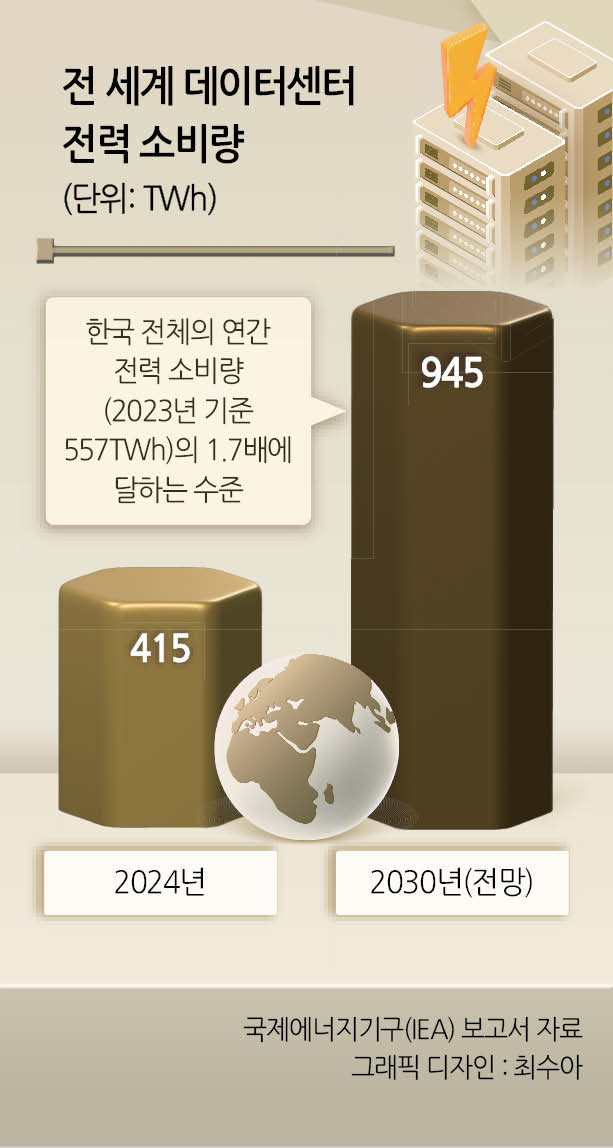 전 세계 전력 수요가 AI 데이터토토사이트 마루한 증가에 따라 폭증하며 일각에선 전력 공급 위기 가능성까지 점쳐진다. 국제에너지기구(IEA)는 4월 발표한 보고서에서 전 세계 데이터토토사이트 마루한의 연간 전력 소비가 2022년 기준 415테라와트시(TWh)에서 2030년까지 945TWh로 두 배 이상 증가할 것으로 내다봤다. 이는 한국의 2023년 전체 전력 사용량(557TWh)의 1.7배 수준이다. 전 세계 데이터토토사이트 마루한 전력 소비가 단일 국가 수준의 수요를 능가하는 셈이다.