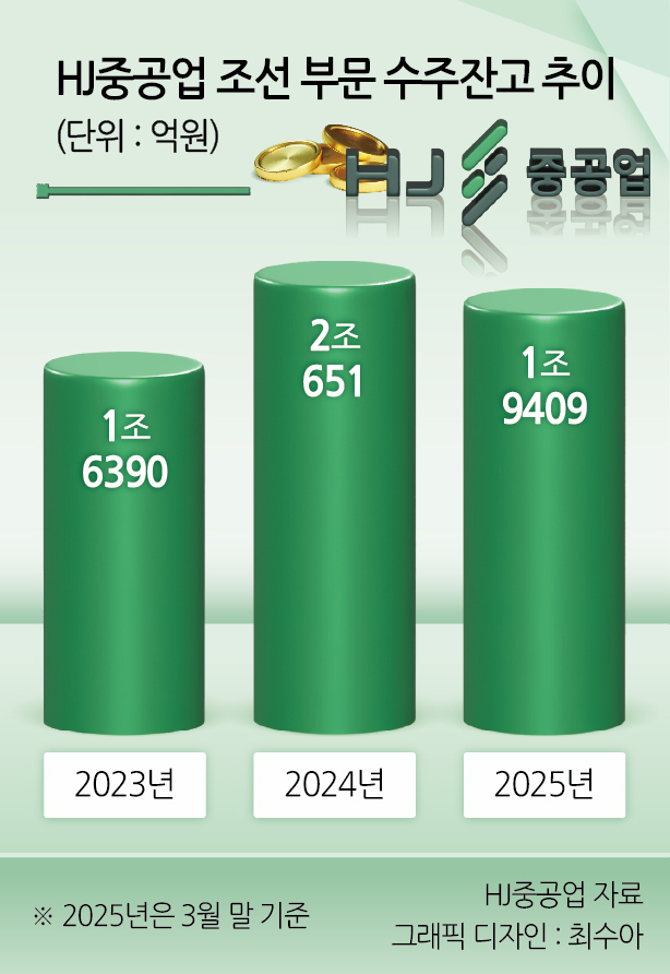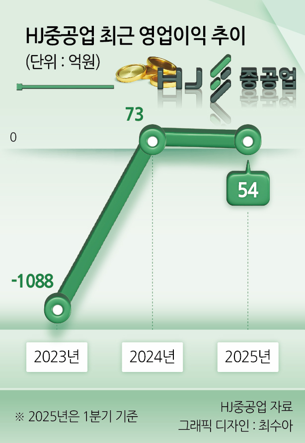 지난해 기준 HJ중공업 수주잔고 2조651억원으로 전년(1조6390억원) 대비 26% 늘었다. 특수선 사업(1조2053억원)이 가장 많은 수주량을 확보했고, 상선(7921억원)과 선박 수리(677억원)가 뒤를 이었다. 탄탄한 수주 잔고에 힘입어 HJ중공업은 지난해 영업이익 73억원을 달성, 1년 만에 흑자 전환을 이뤘다. 올해 1분기(54억원)에도 흑자를 달성하고 있다.