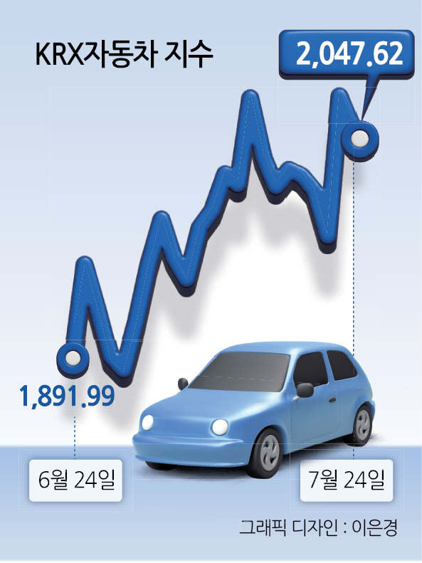 지수를 구성하는 현대차(-2.03%), 기아(-1.04%), 현대모비스(-1.0%),. 한국앤컴퍼니(-0.98%), 한온시스템(-1.64%) 등이 하락했다. 한미 통상회담이 베센트 미국 재무장관의 긴급 일정으로 연기된 가운데 후속 협상 일정조차 정해지지 않으면서 증시 전반의 변동성도 커졌다.