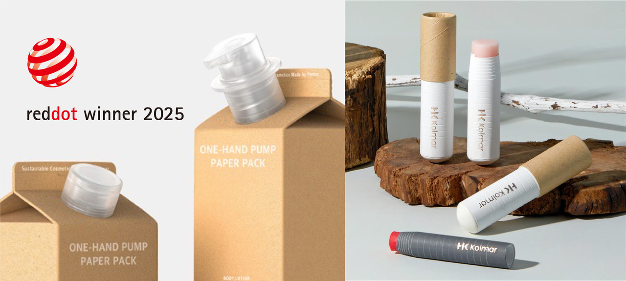 한국콜마는 독일 ‘레드닷 투게더토토 어워드 2025’ 패키징 부문에서 종이스틱이 최우수상, 원핸드펌프 페이퍼팩(왼쪽)이 본상(Winner)을 수상했다고 25일 밝혔다. 어워드에 출품한 두 작품이 동시 수상한 사례는 국내 화장품업계 최초다. 레드닷 투게더토토 어워드는 독일 노르트라인 베스트팔렌 투게더토토센터가 주관하는 세계 3대 투게더토토 어워드 중 하나다.